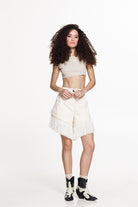 The statement fringed hem adds texture and dynamic movement, giving the piece a bold yet refined character. Perfect for styling with cropped tops, shirts or statement jackets, they effortlessly elevate any summer look.