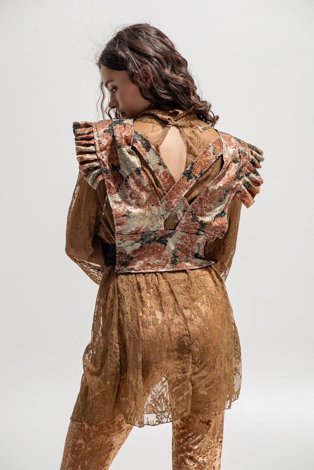 Step into the spotlight with this sculptural sequined vest — a signature Jerkins piece that blends bold shape with effortless femininity. Crafted from shimmering floral sequins, it reflects the light beautifully, adding depth and texture to every movement.