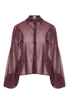 The Kashina Transparent Shirt is a bold and versatile wardrobe piece, crafted from lightweight, sheer fabric in a deep magenta tone. It features a relaxed silhouette with a classic collar and button-front closure, offering an elegant and edgy look. Perfect for layering over bralettes or pairing with high-waisted bottoms, this shirt adds a touch of sophistication to casual and festive outfits. Designed for those who want to stand out, its sheer construction ensures a sleek and modern aesthetic