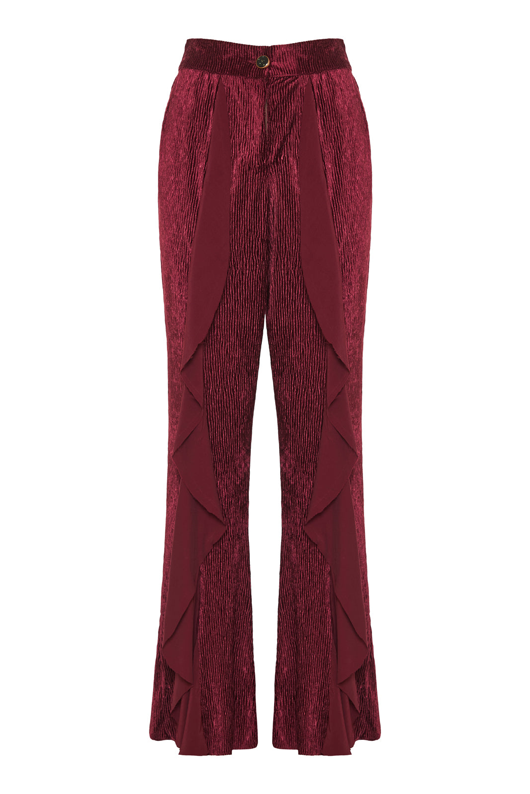 The Sacoya Velvet Pants in Bordeaux are a statement piece designed to add sophistication and luxury to any wardrobe. Crafted from a plush velvet fabric, these pants feature a rich bordeaux hue that exudes elegance. The high-rise waist and wide-leg silhouette offer a flattering, elongated shape, making them both chic and comfortable. Ideal for both formal and festive occasions, they pair effortlessly with tailored tops or blazers for a complete, polished look