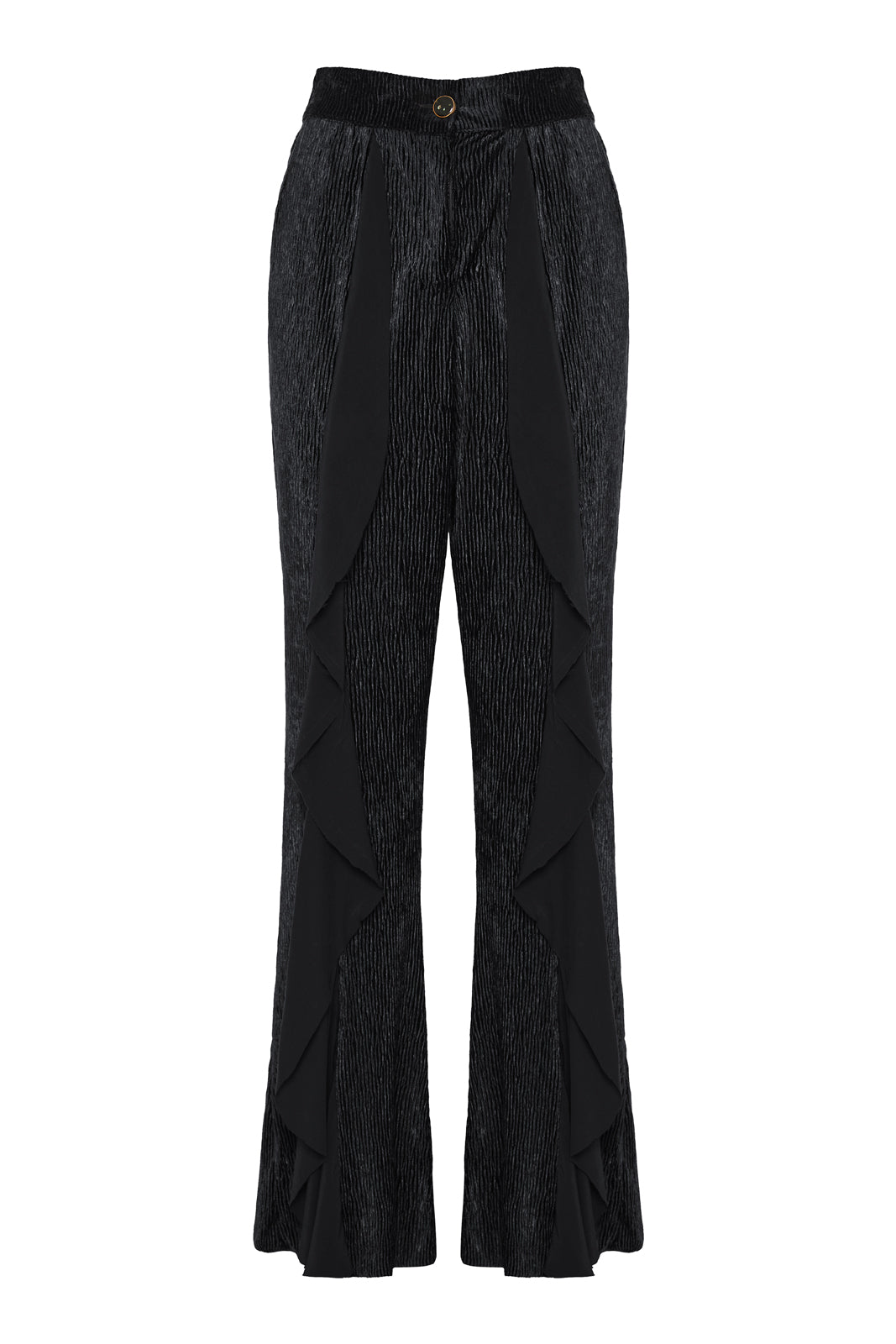 The Sacoya Velvet Pants in Black are a statement piece designed to add sophistication and luxury to any wardrobe. Crafted from a plush velvet fabric, these pants feature a rich black hue that exudes elegance. The high-rise waist and wide-leg silhouette offer a flattering, elongated shape, making them both chic and comfortable. Ideal for both formal and festive occasions, they pair effortlessly with tailored tops or blazers for a complete, polished look