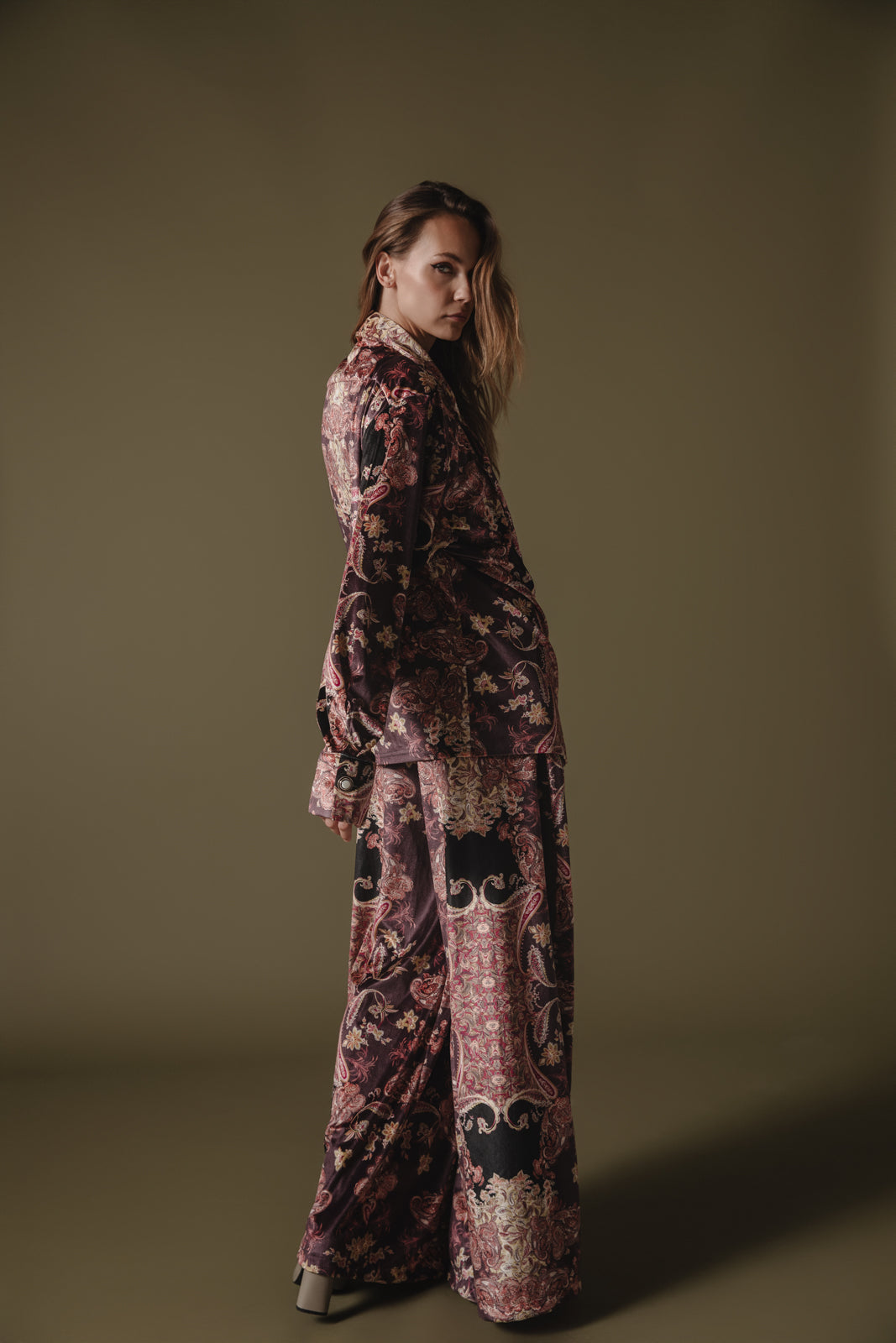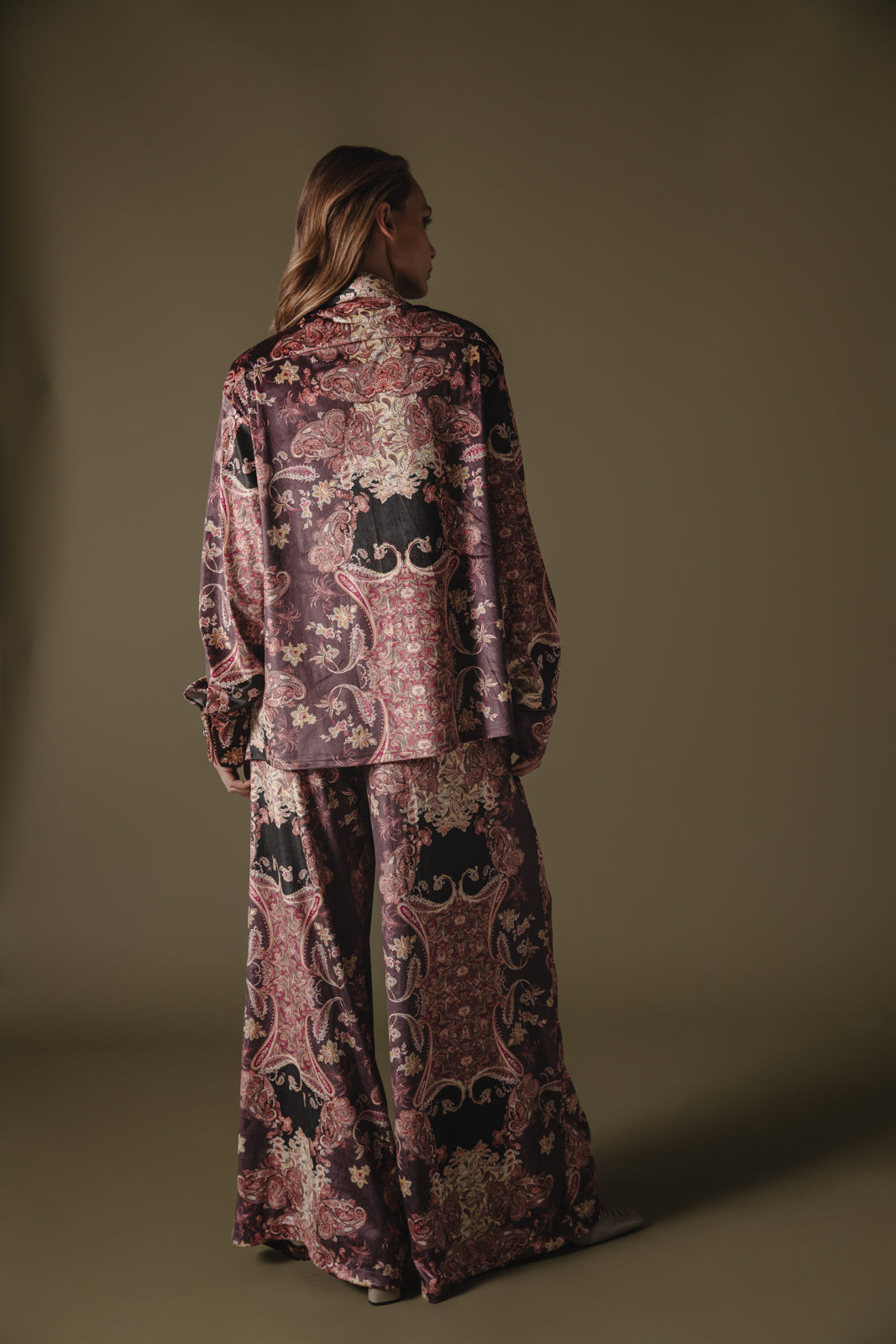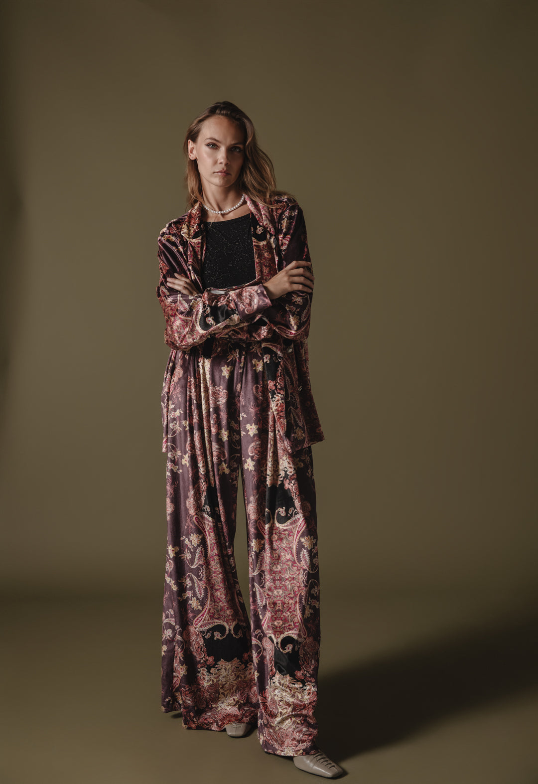Elevate your wardrobe with this luxurious velvet blazer, featuring an intricate tapestry-inspired pattern in rich tones of bordeaux, black, and muted gold. With a relaxed, slightly oversized fit and a double-breasted front, it combines elegance with an effortlessly comfortable feel. Perfect for layering, this blazer is ideal for both casual and formal occasions, adding a touch of opulence to any outfit.