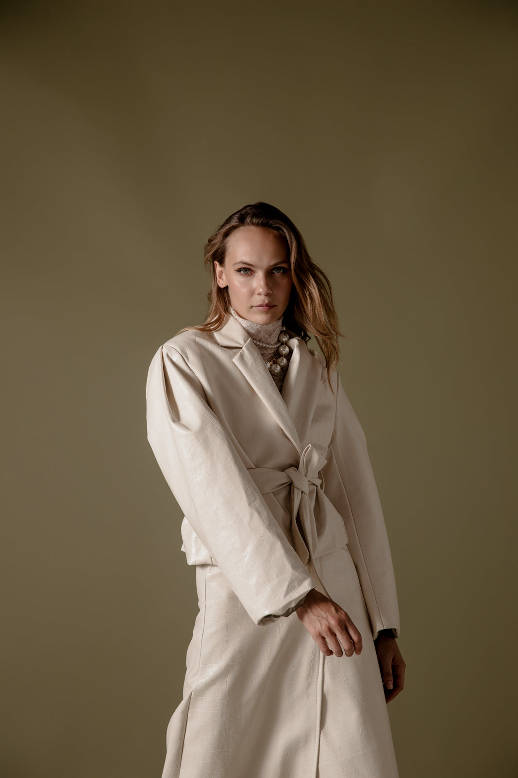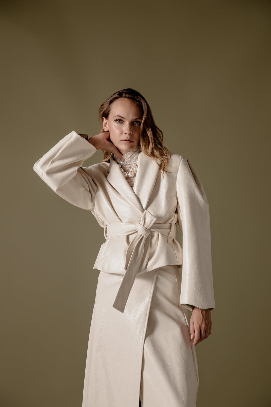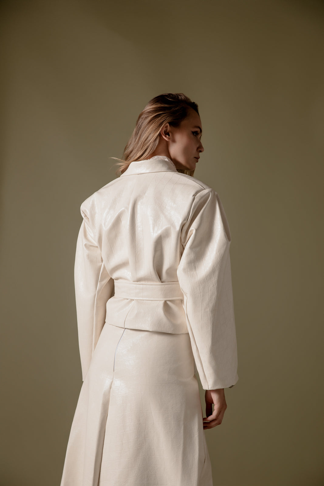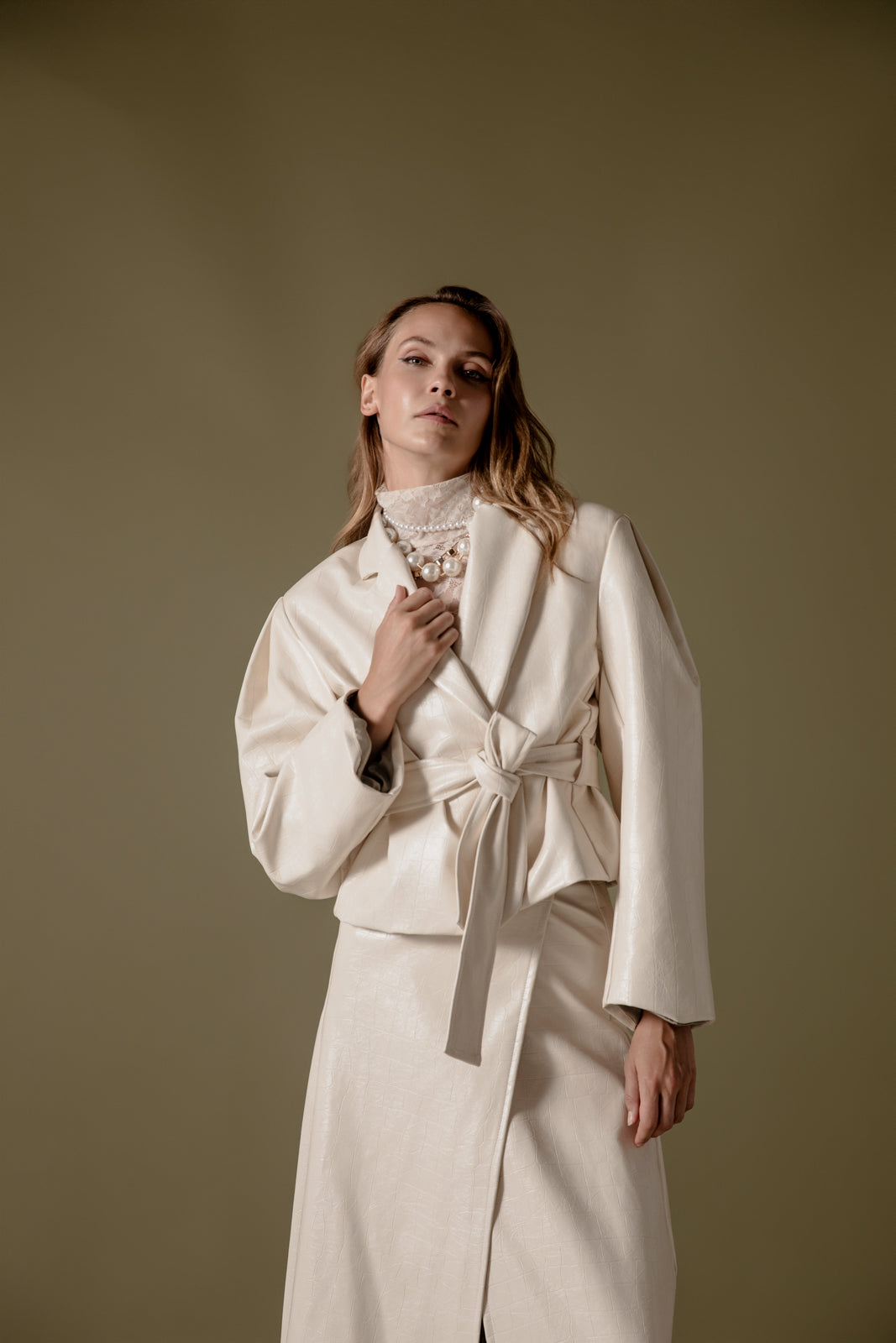 The Atohi Eco-Leather Jacket in white is a sleek, contemporary piece designed for the fashion-forward. Crafted from high-quality eco-leather, it combines style with sustainability. The clean, minimalistic design makes it a versatile wardrobe staple, perfect for layering over both casual and formal outfits. Its smooth finish and modern silhouette provide a chic, timeless look. Ideal for those seeking an ethical yet trendy jacket.