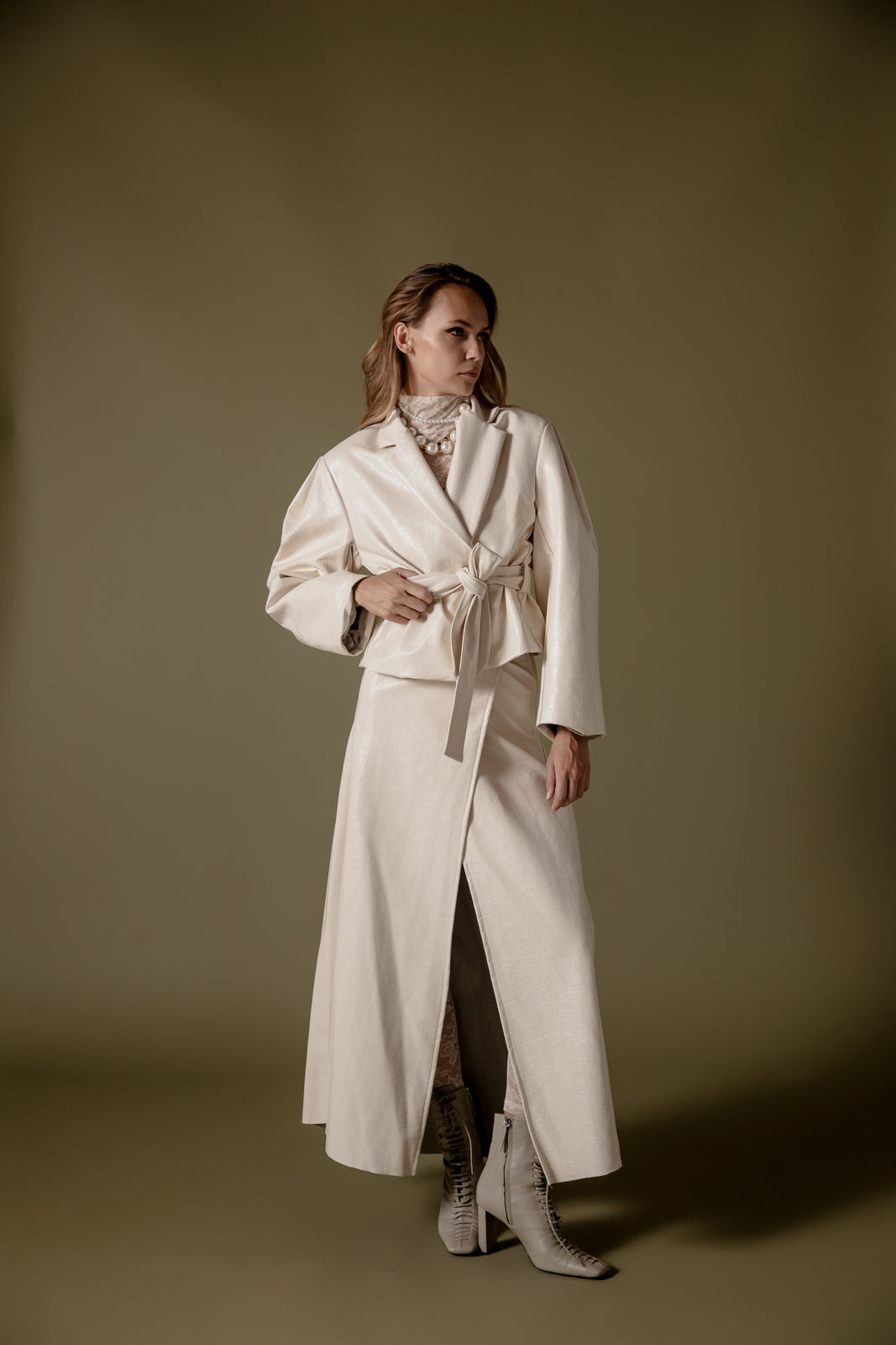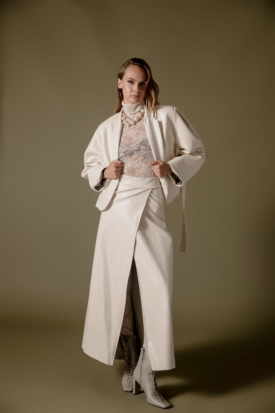 The Atohi Eco-Leather Skirt in white offers a modern, chic look with a sustainable edge. Crafted from high-quality eco-leather, this skirt combines comfort and style, making it perfect for a variety of occasions. Its sleek, tailored design ensures a flattering fit, while the versatile white color allows for effortless styling with both casual and formal tops. Ideal for those seeking a fashionable and eco-conscious wardrobe piece.