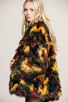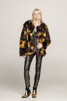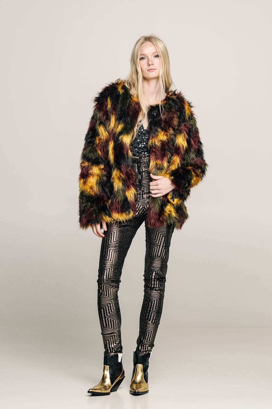 Step into full statement mode with this vibrant eco-fur coat — a fearless, high-impact layer designed for the ones who don’t blend in. Its rich mix of mustard, burgundy and deep green tones creates a striking, textured effect that instantly elevates even the simplest look. Soft to the touch yet full of attitude, it brings warmth, volume and that signature Jerkins energy.