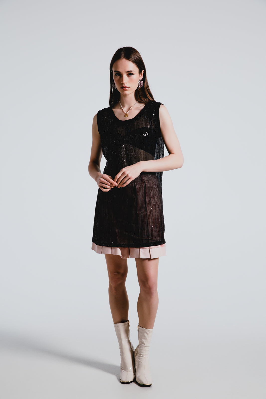 Glisten with every move in our Sequined Tank Top, a dazzling piece that perfectly balances glamour with wearable sophistication. Its shimmering cascade of sequins makes it an exquisite choice for any fashion-forward wardrobe.