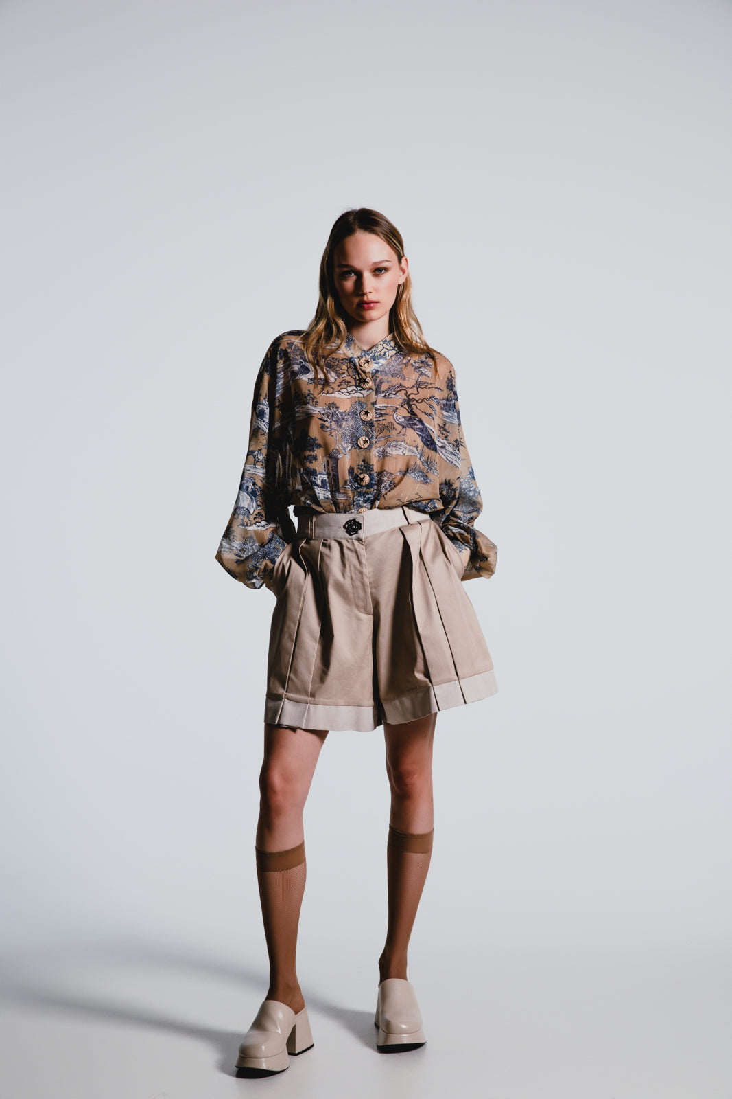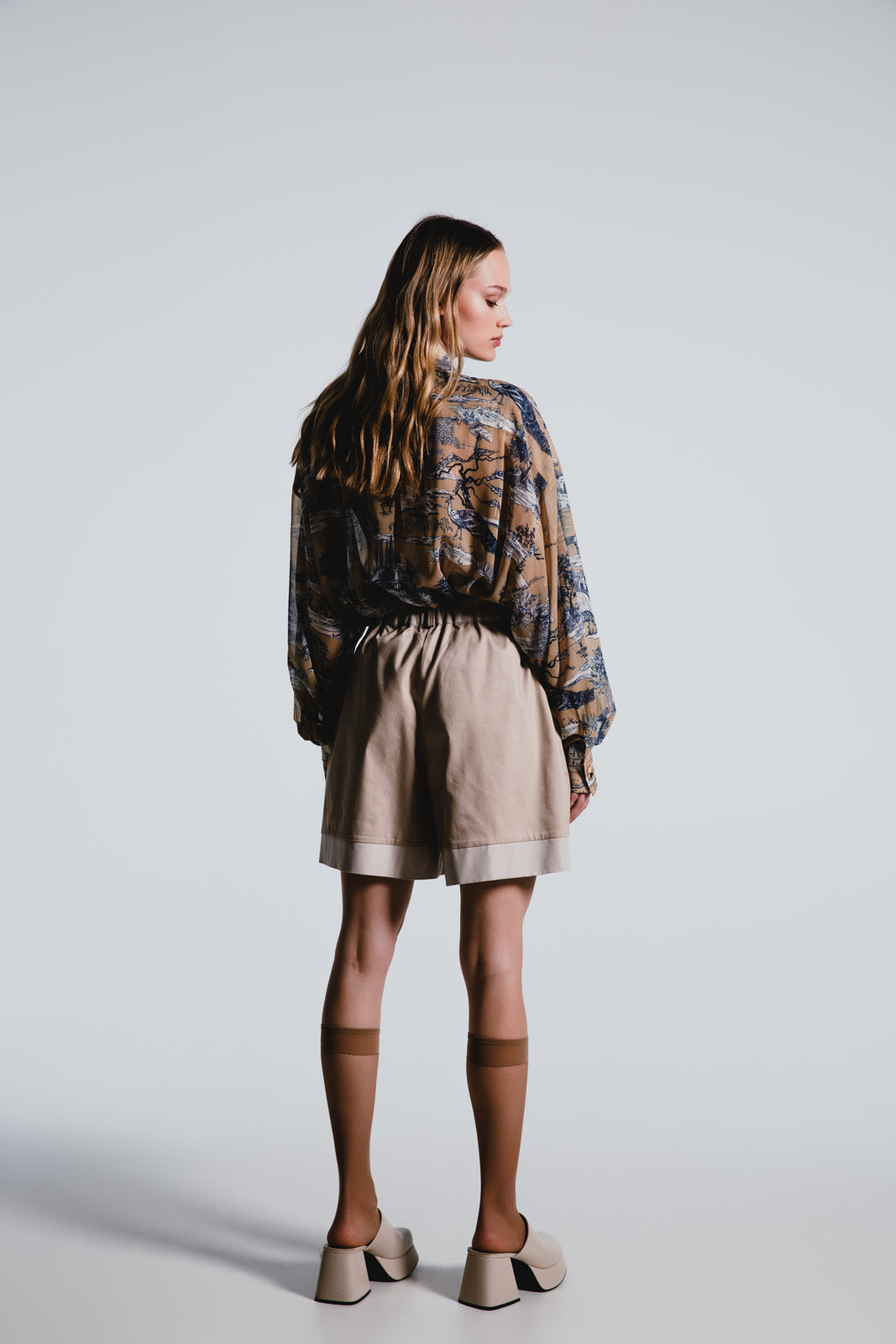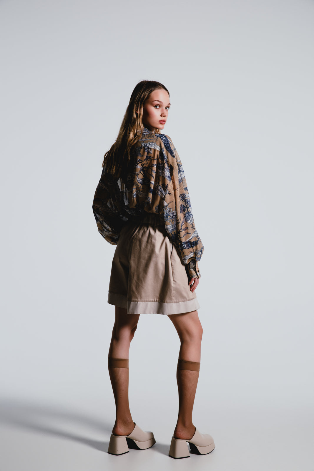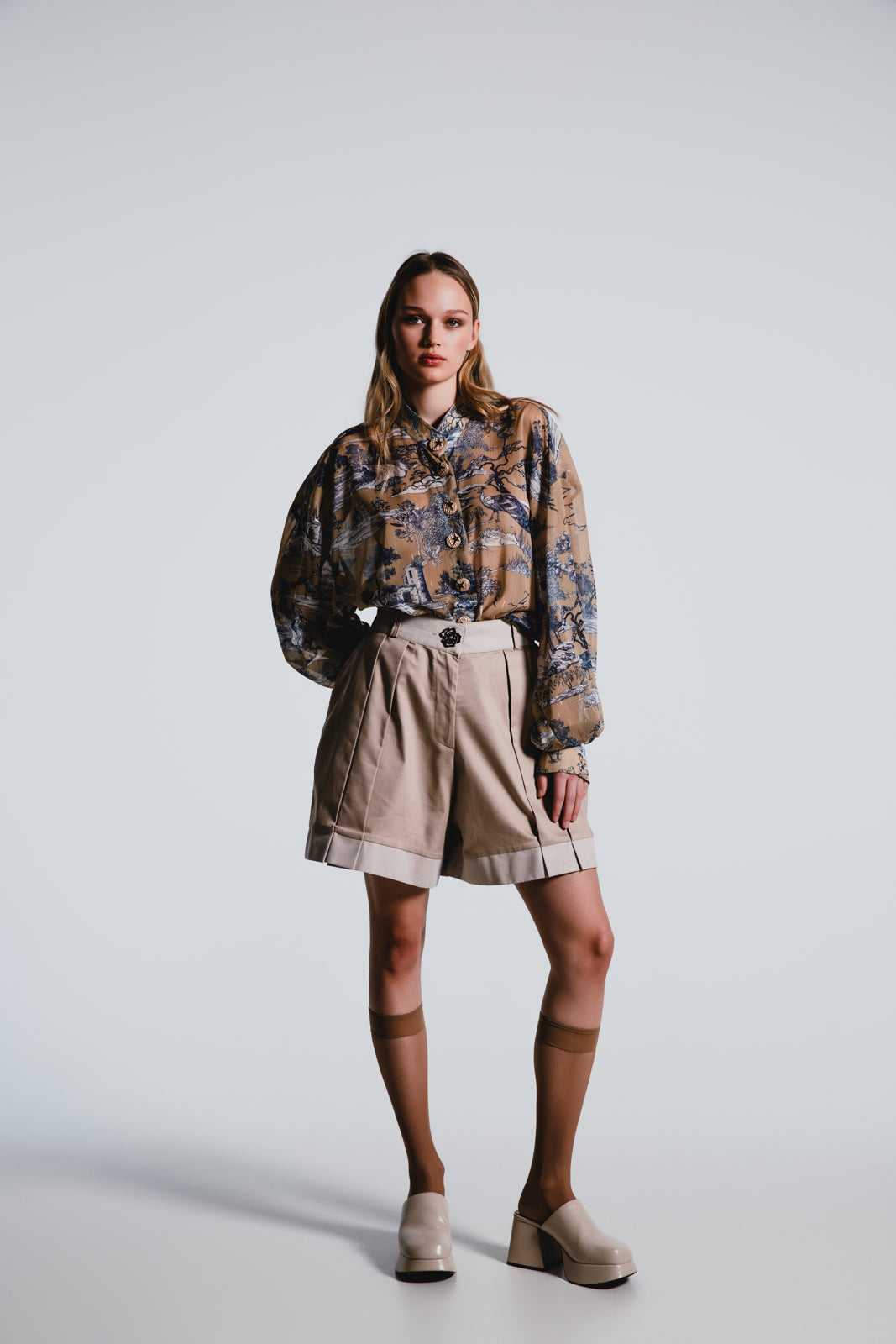 Sport a fresh take on a classic style with our Beige Pleated Shorts. The structured design and refined detailing offer a polished look with a playful edge, perfect for a variety of occasions.