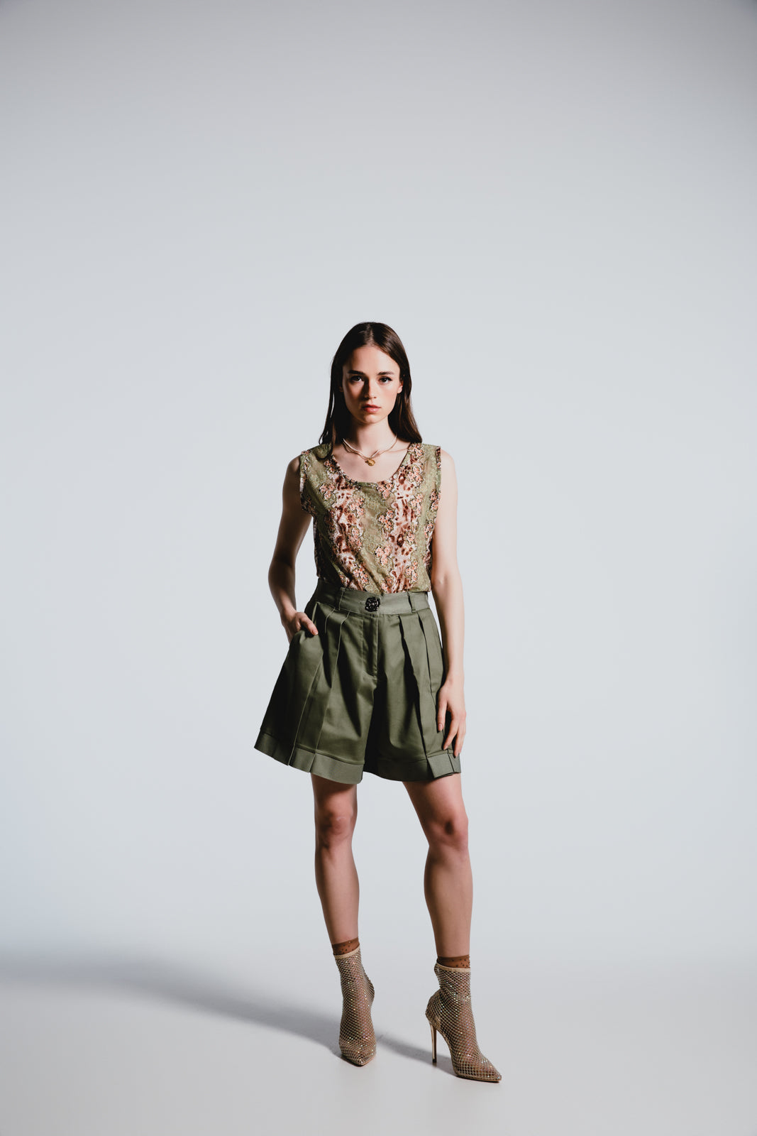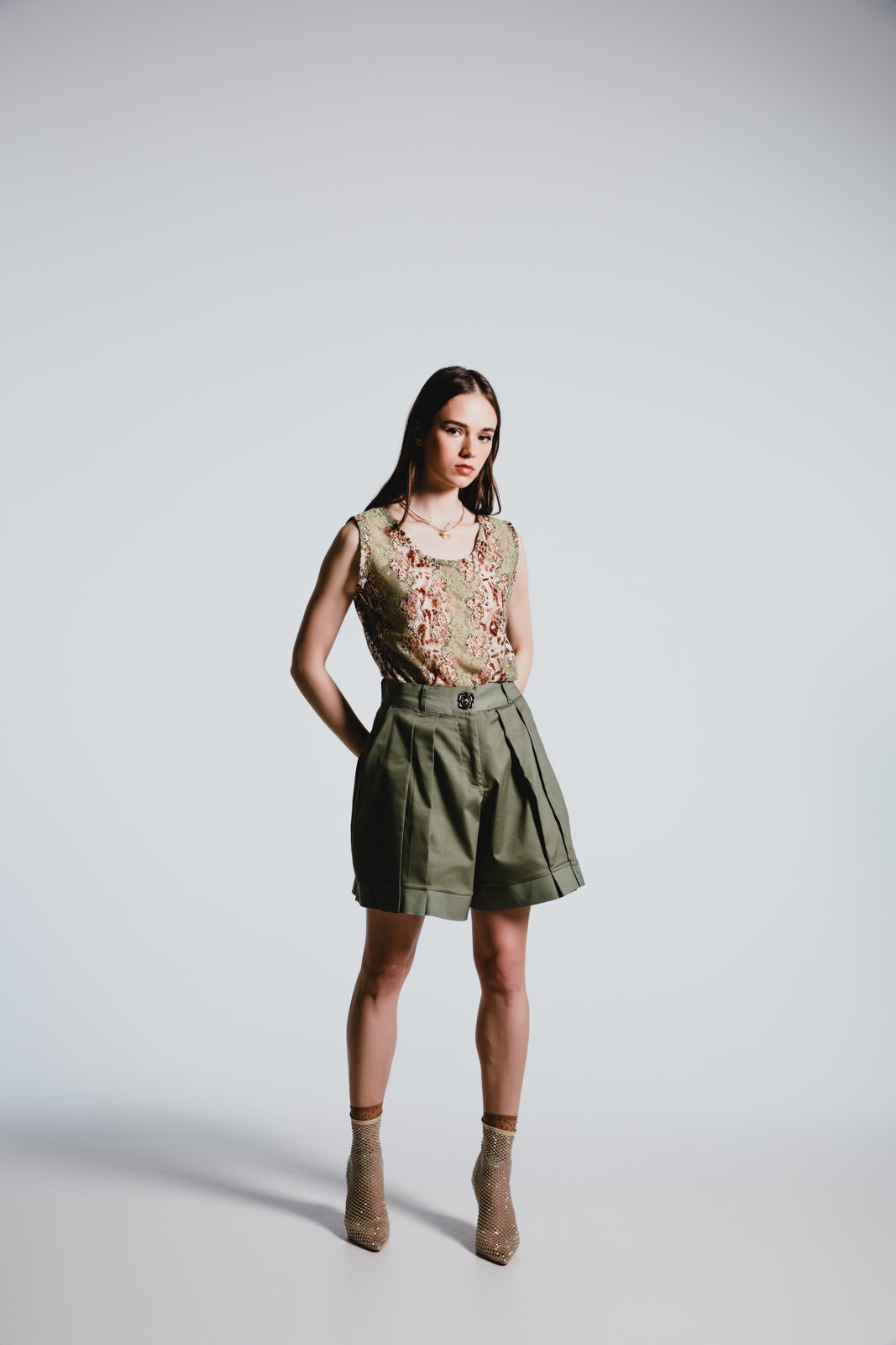 Sport a fresh take on a classic style with our Olive Pleated Shorts. The structured design and refined detailing offer a polished look with a playful edge, perfect for a variety of occasions.