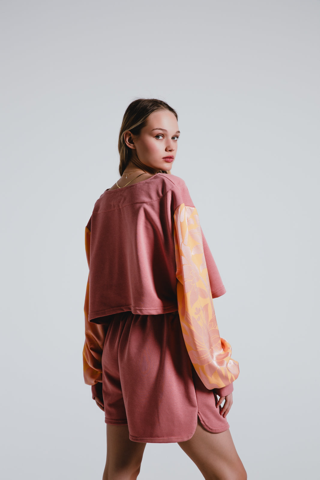 Drape yourself in the cool comfort of our Peach Sweatshirt. With a relaxed fit and vibrant sleeve accents, it’s casual wear with a twist of fun, perfect for adding a pop of color to your cozy days.
