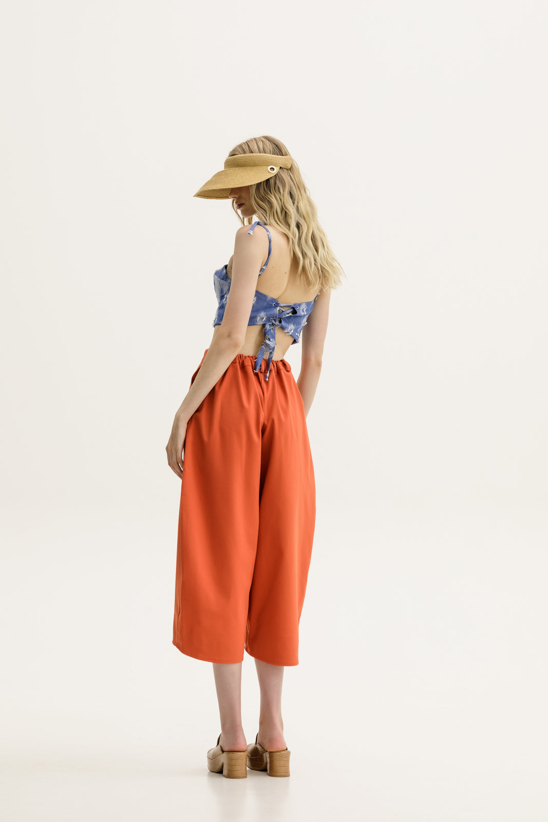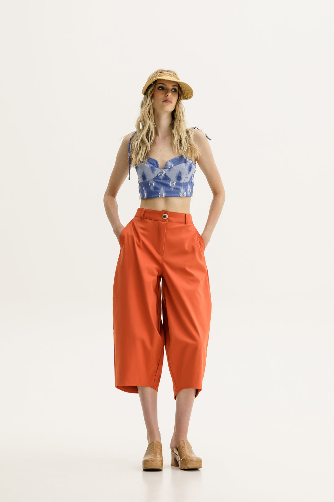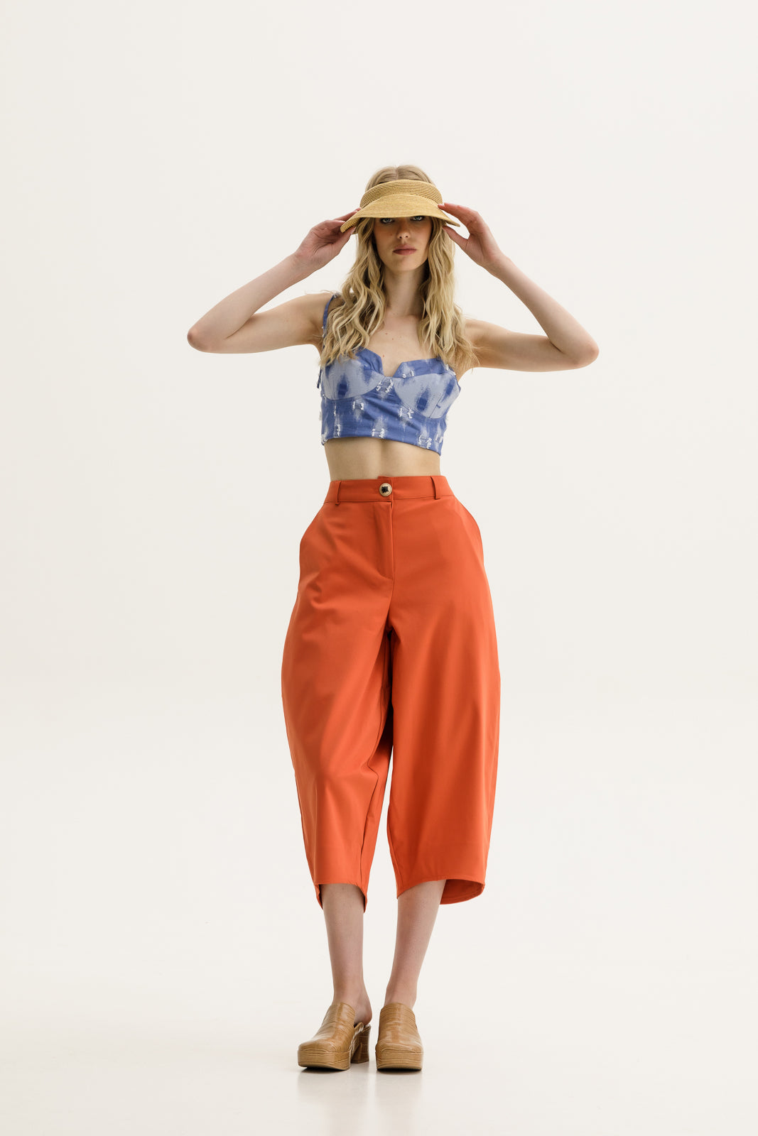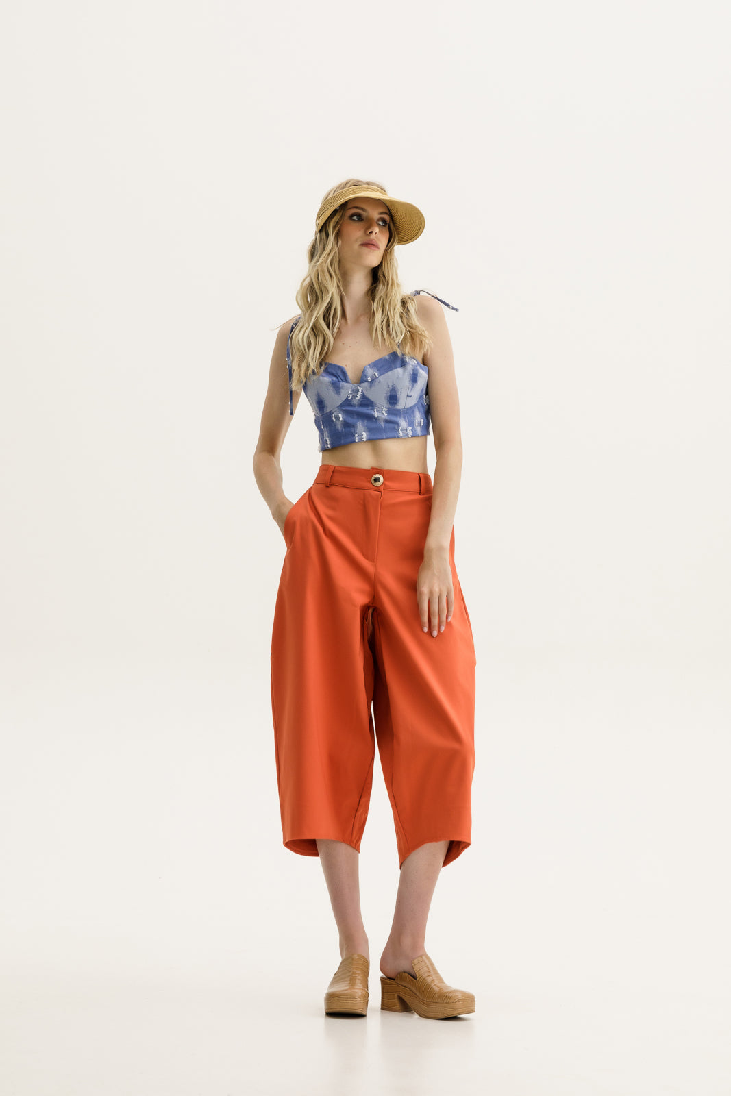 The Chogan Cropped Pants in orange bring a pop of color to your wardrobe with their modern cropped fit. Made from soft, breathable fabric, these pants offer both style and comfort. The bold orange tone adds a playful, vibrant touch to casual or semi-casual outfits, making them perfect for creating statement looks.