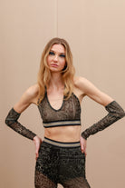So luxe bralette featured in a longline silhouette and sheer mesh transparent fabrication with striped panel detailing.