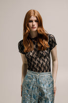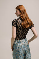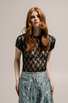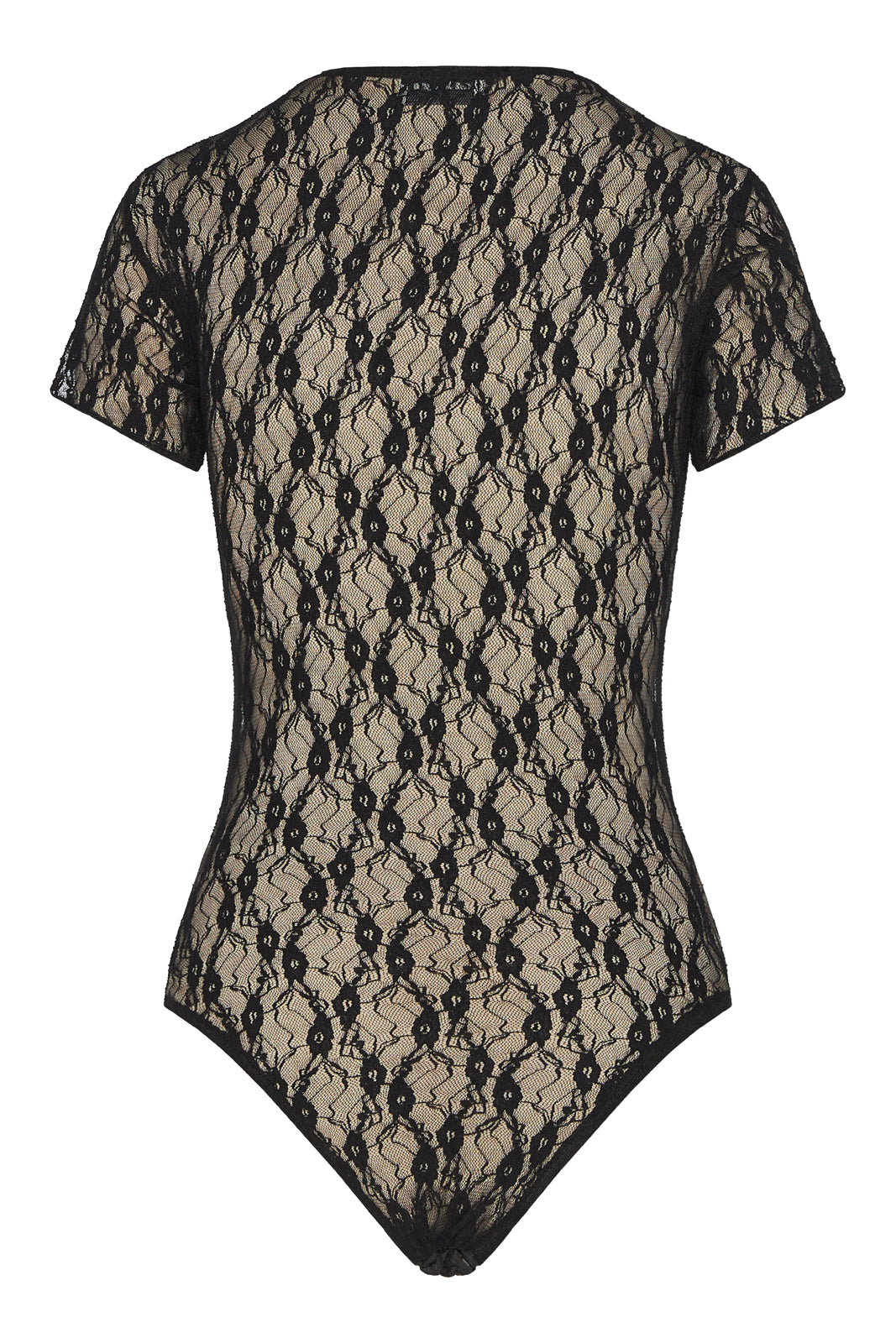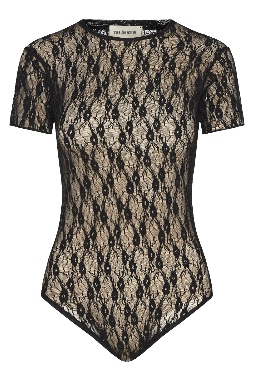 The Adriel Lace Bodysuit in black is a delicate and feminine piece, crafted from sheer lace with intricate floral patterns. Its body-hugging silhouette and deep neckline make it perfect for layering under blazers or wearing as a statement piece on its own. Ideal for adding a sensual yet sophisticated touch to your wardrobe.