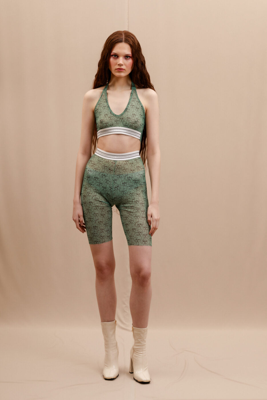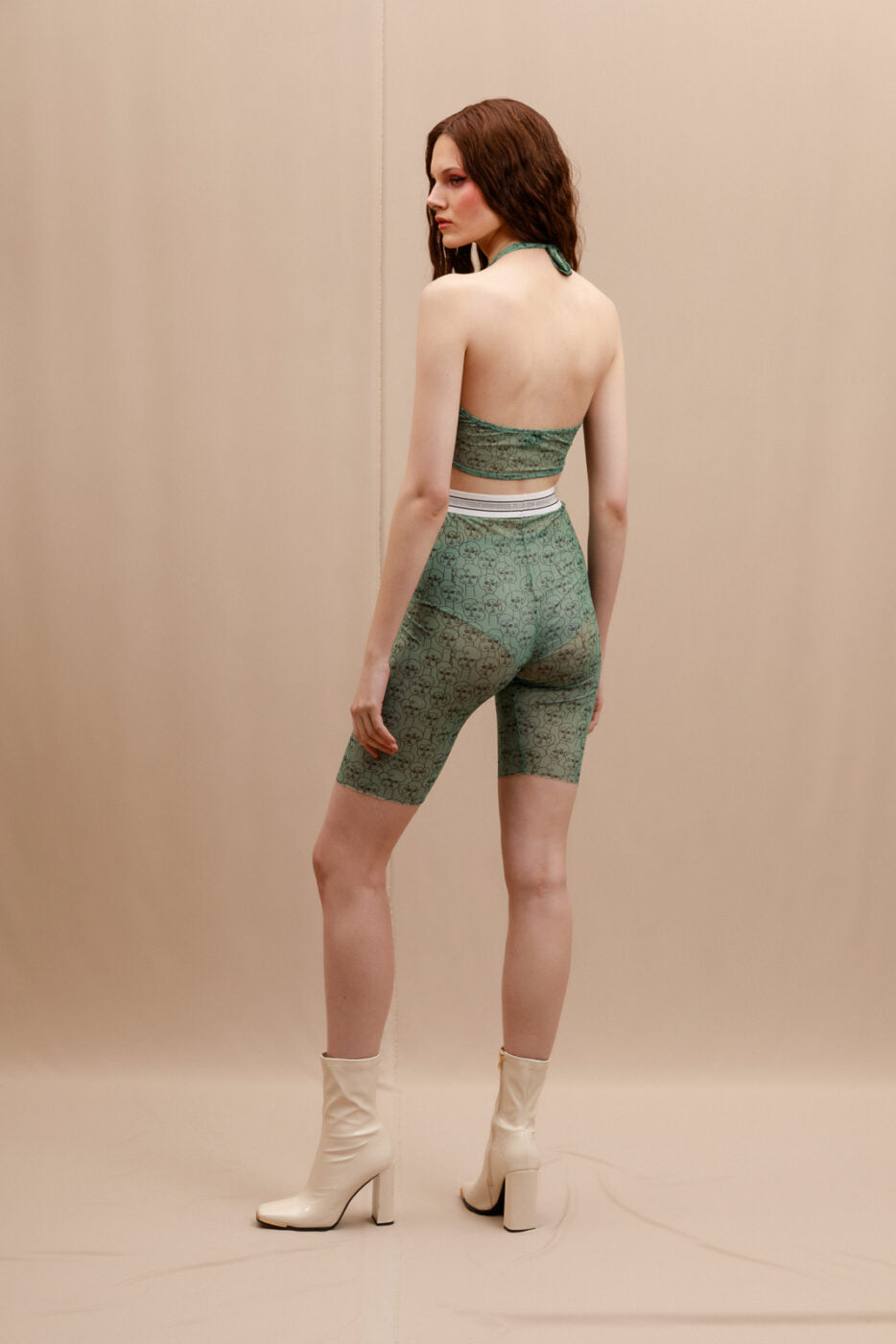 Sheer mesh transparent shorts featured in a classic bike short silhouette and high-rise fit with stunning waist panel.