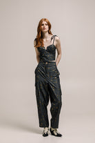 The Gabby Denim Cargo Pants in Black are a versatile and stylish addition to your wardrobe. These pants feature a classic black denim fabric that pairs effortlessly with various tops and accessories. The cargo design includes functional side pockets, adding both utility and a contemporary edge to your outfit. It offers a comfortable fit for different body types. Whether you're aiming for a casual look or something more polished, the Gabby Denim Cargo Pants provide a chic and practical choice.