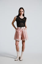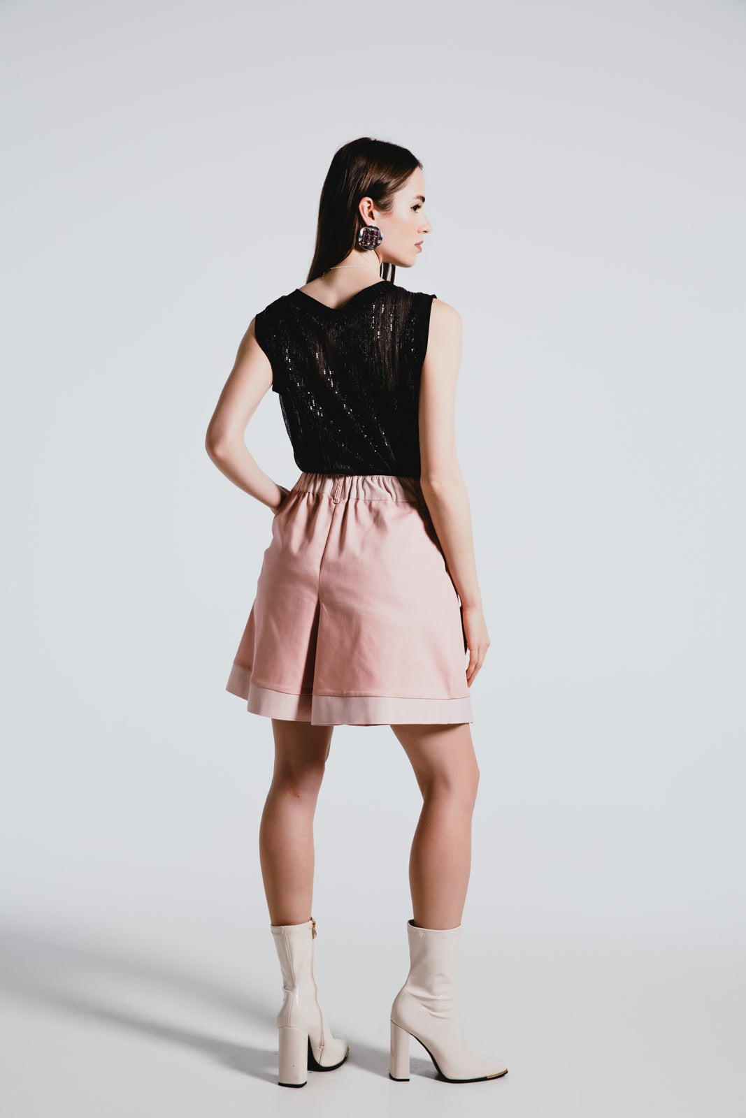 Sport a fresh take on a classic style with our Pink Pleated Shorts. The structured design and refined detailing offer a polished look with a playful edge, perfect for a variety of occasions.