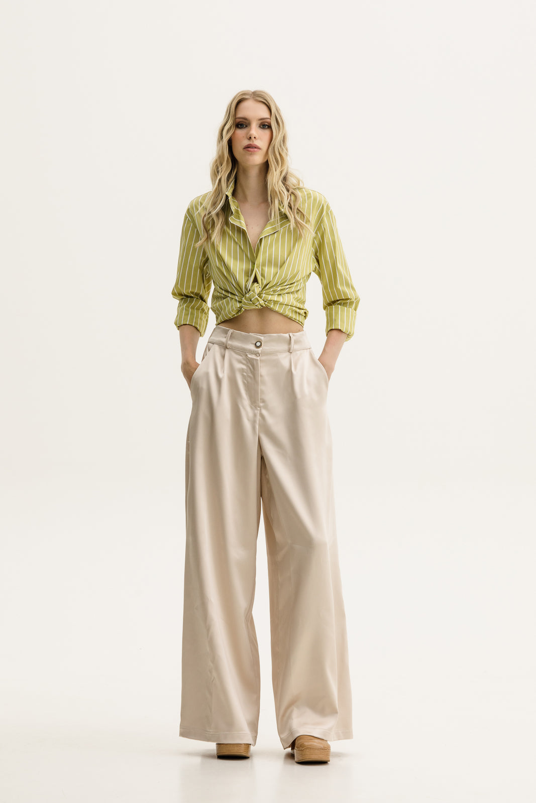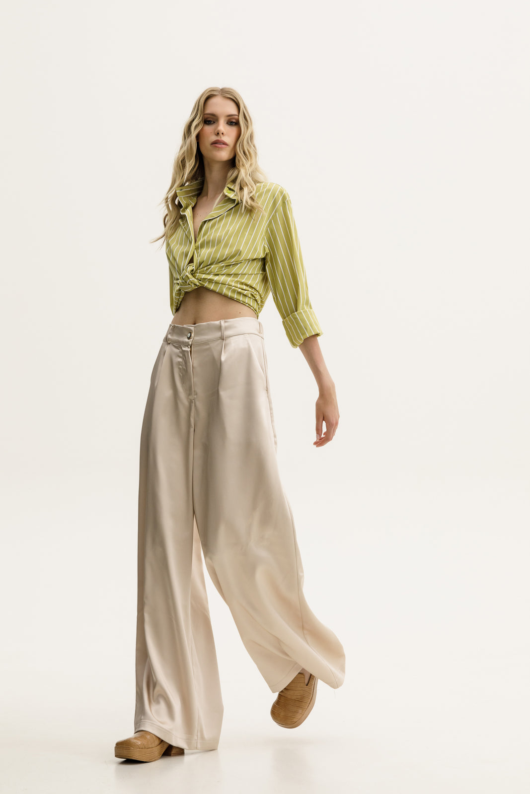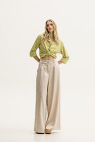 The Kahil Pants in vanilla offer a relaxed, wide-leg fit with a modern aesthetic, designed for both comfort and style. The rich, earthy color adds warmth to your wardrobe, making these pants perfect for creating versatile, laid-back looks. Crafted from soft, satin, stunning fabric, they combine ease of wear with effortless style, ideal for everyday wear or casual outings.