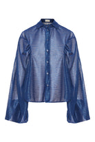 The Kashina Transparent Shirt is a bold and versatile wardrobe piece, crafted from lightweight, sheer fabric in a rich blue tone. It features a relaxed silhouette with a classic collar and button-front closure, offering an elegant and edgy look. Perfect for layering over bralettes or pairing with high-waisted bottoms, this shirt adds a touch of sophistication to casual and festive outfits. Designed for those who want to stand out, its sheer construction ensures a sleek and modern aesthetic