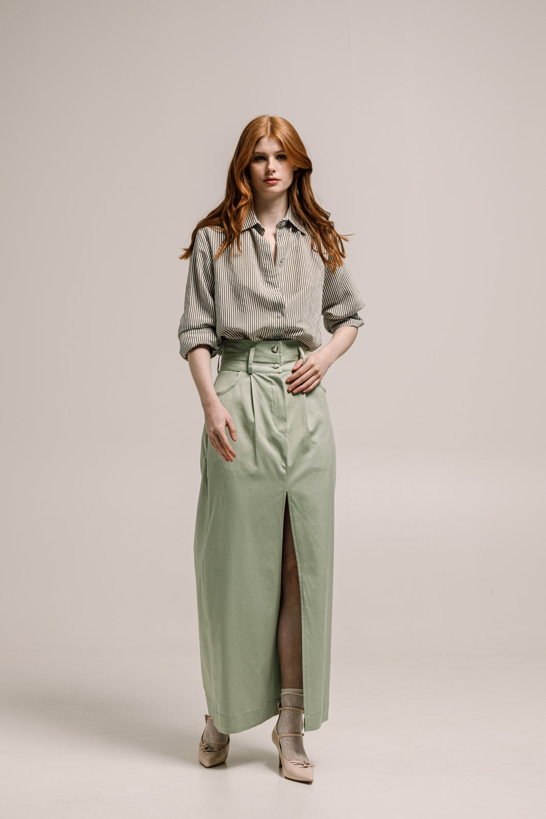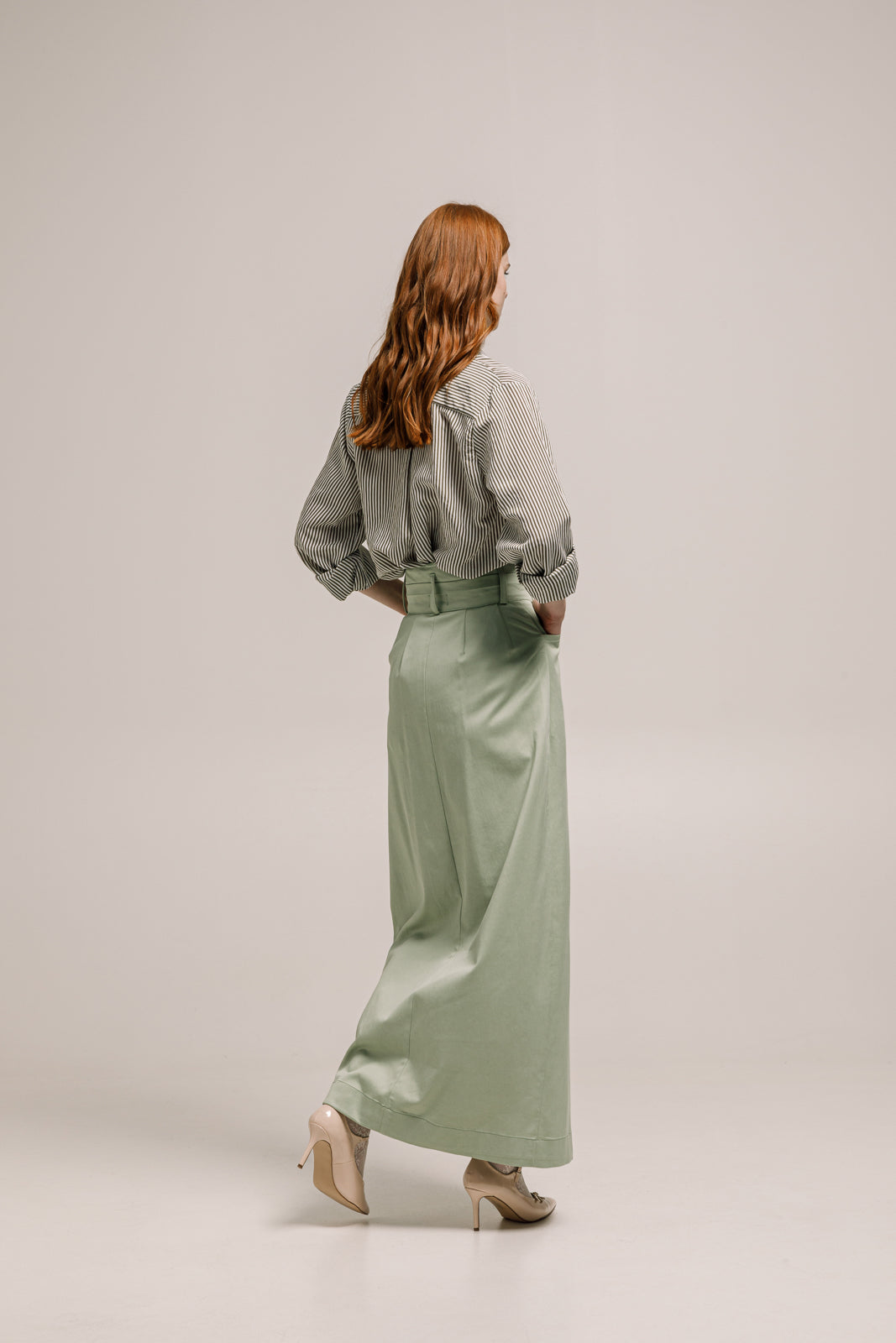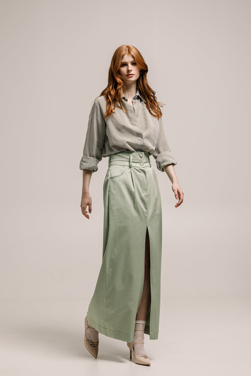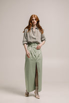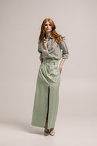 The Nadra Skirt in mint features a soft, flowing design with a subtle, elegant look. Its lightweight fabric and flattering silhouette make it perfect for creating both casual and dressy outfits. The refreshing mint color adds a pop of vibrancy, making it a versatile piece for various occasions.