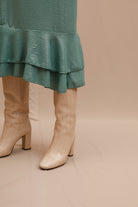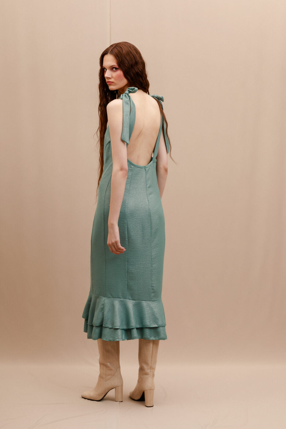Stand out in this stunning midi dress featured in a super silky fabrication and slip silhouette with exaggerated ruffle detailing for an added special touch.