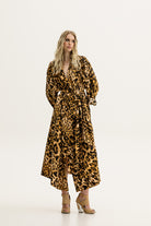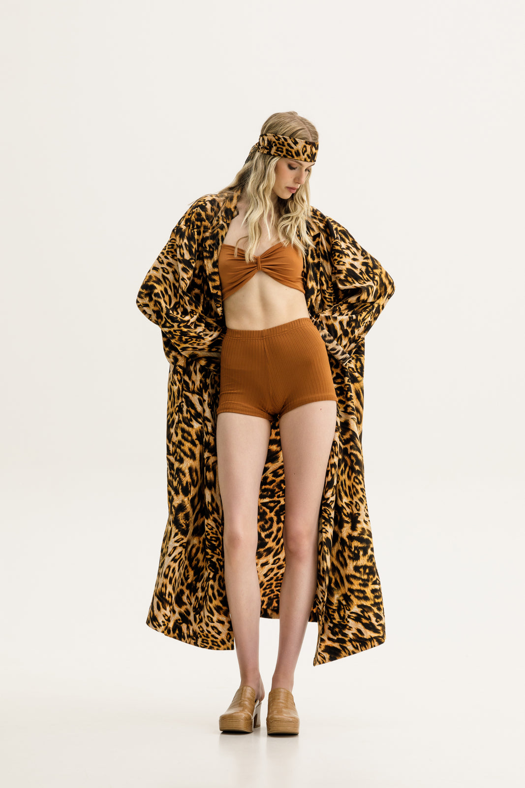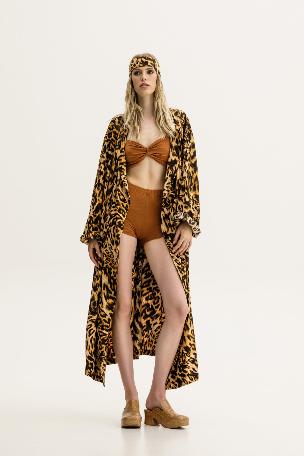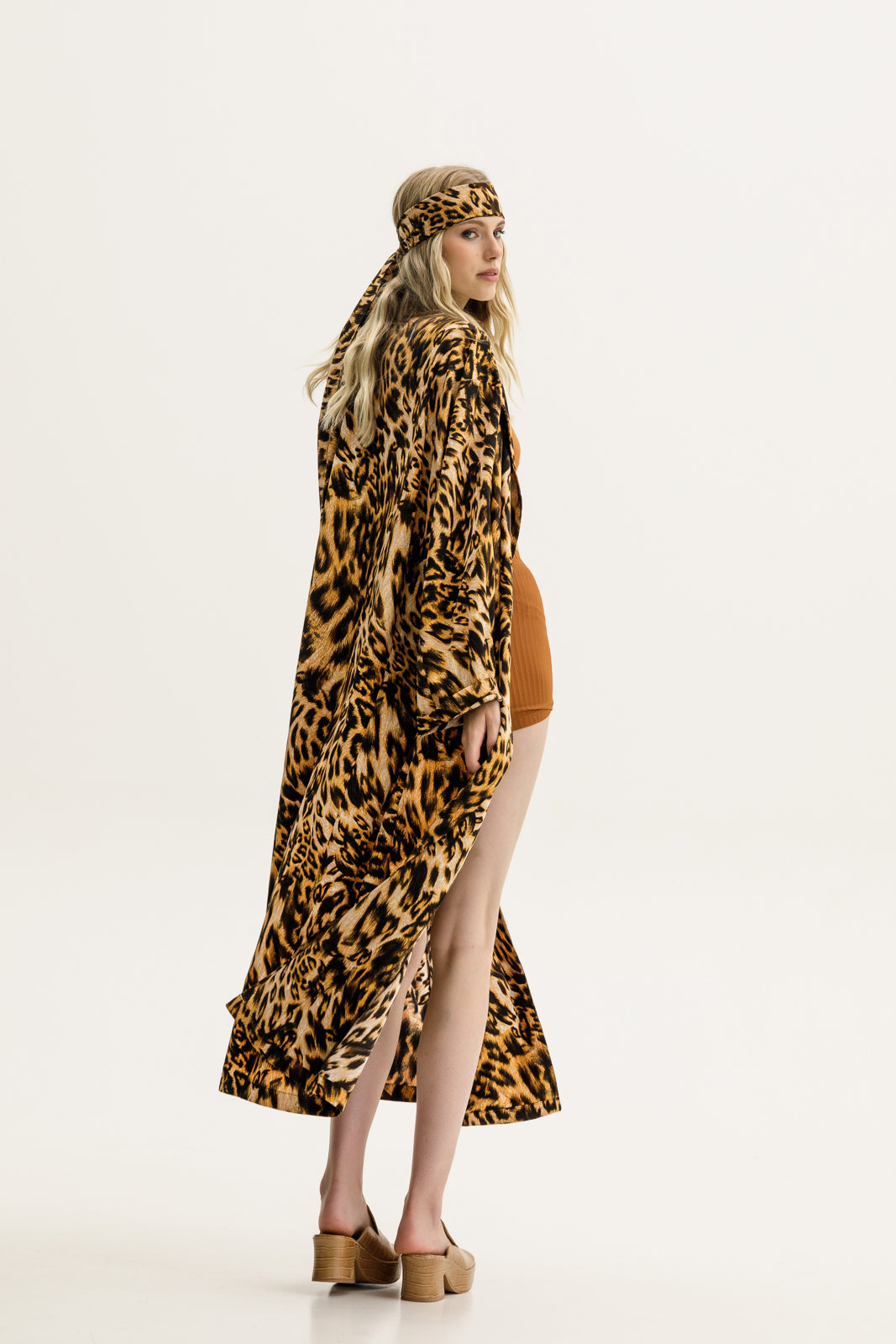 The Pacho Robe in printed copper features a kimono-style design, offering versatile wear for both lounging and layering. Its relaxed, flowing fit and rich pattern make it perfect for adding a chic touch to your outfit or enjoying a comfortable, elegant look at home. Ideal for creating a bohemian-inspired style, this robe easily transitions from cozy loungewear to a fashionable outer layer.