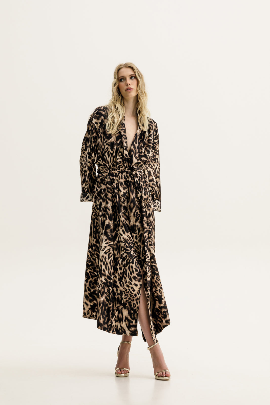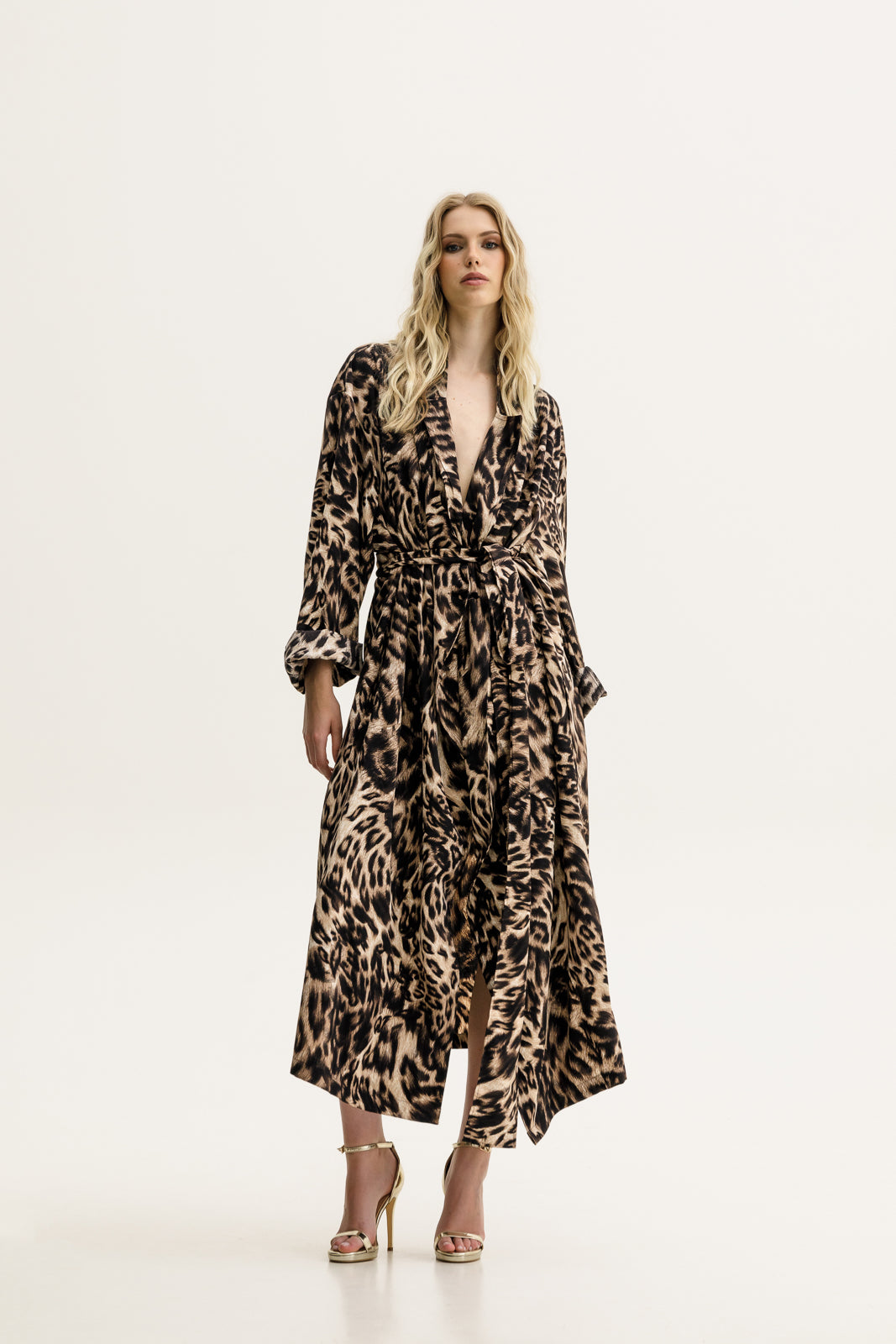 The Pacho Robe in printed mocha features a kimono-style design, offering versatile wear for both lounging and layering. Its relaxed, flowing fit and rich pattern make it perfect for adding a chic touch to your outfit or enjoying a comfortable, elegant look at home. Ideal for creating a bohemian-inspired style, this robe easily transitions from cozy loungewear to a fashionable outer layer.