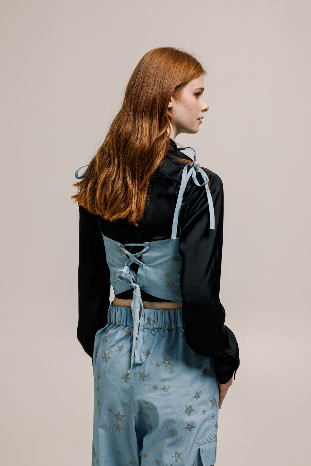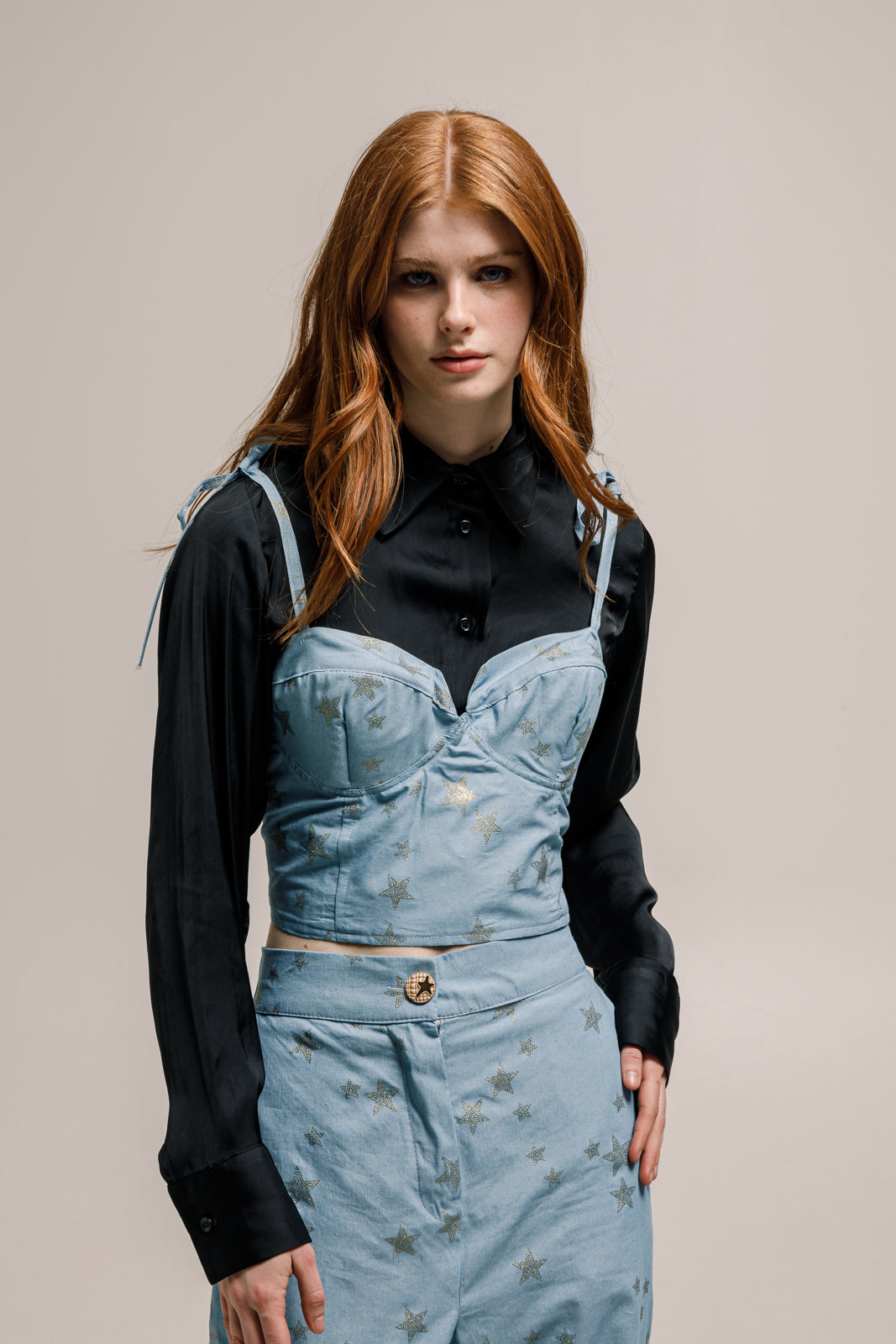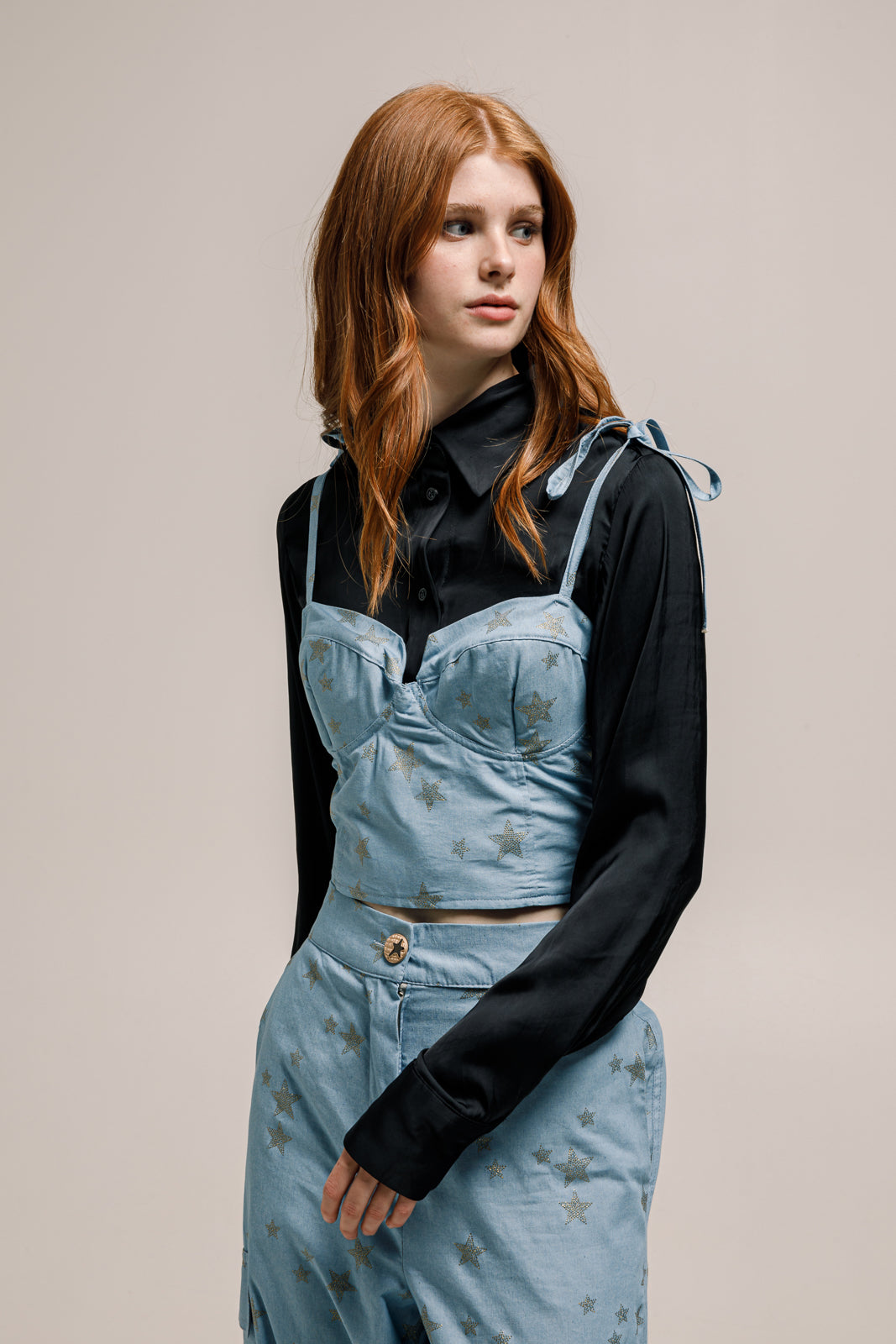 The Bahia Denim Corset in Light Blue is a stylish and versatile piece designed to enhance your wardrobe. The black denim fabric offers a modern twist on the classic corset design, making it a perfect match for both casual and formal outfits. Pair it with high-waisted jeans for a chic, coordinated look, or layer it over a blouse to add structure and sophistication to your ensemble. The Bahia Denim Corset is a testament to The Jerkins' commitment to creating bold, empowering fashion for the modern woman.