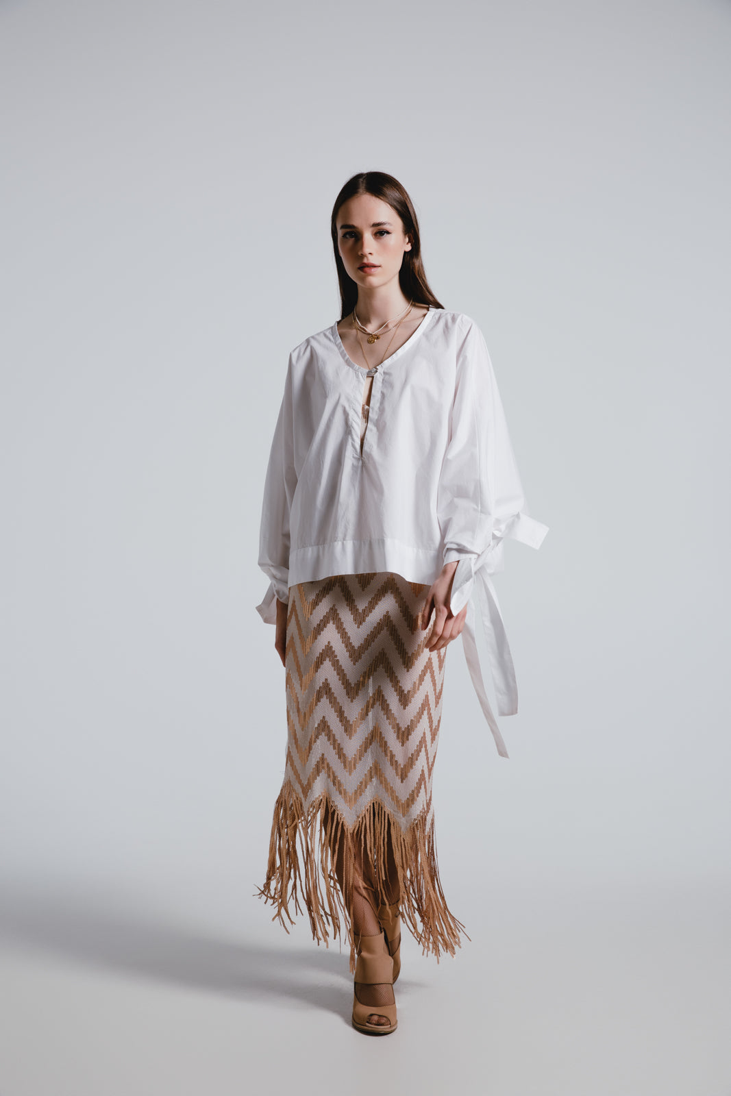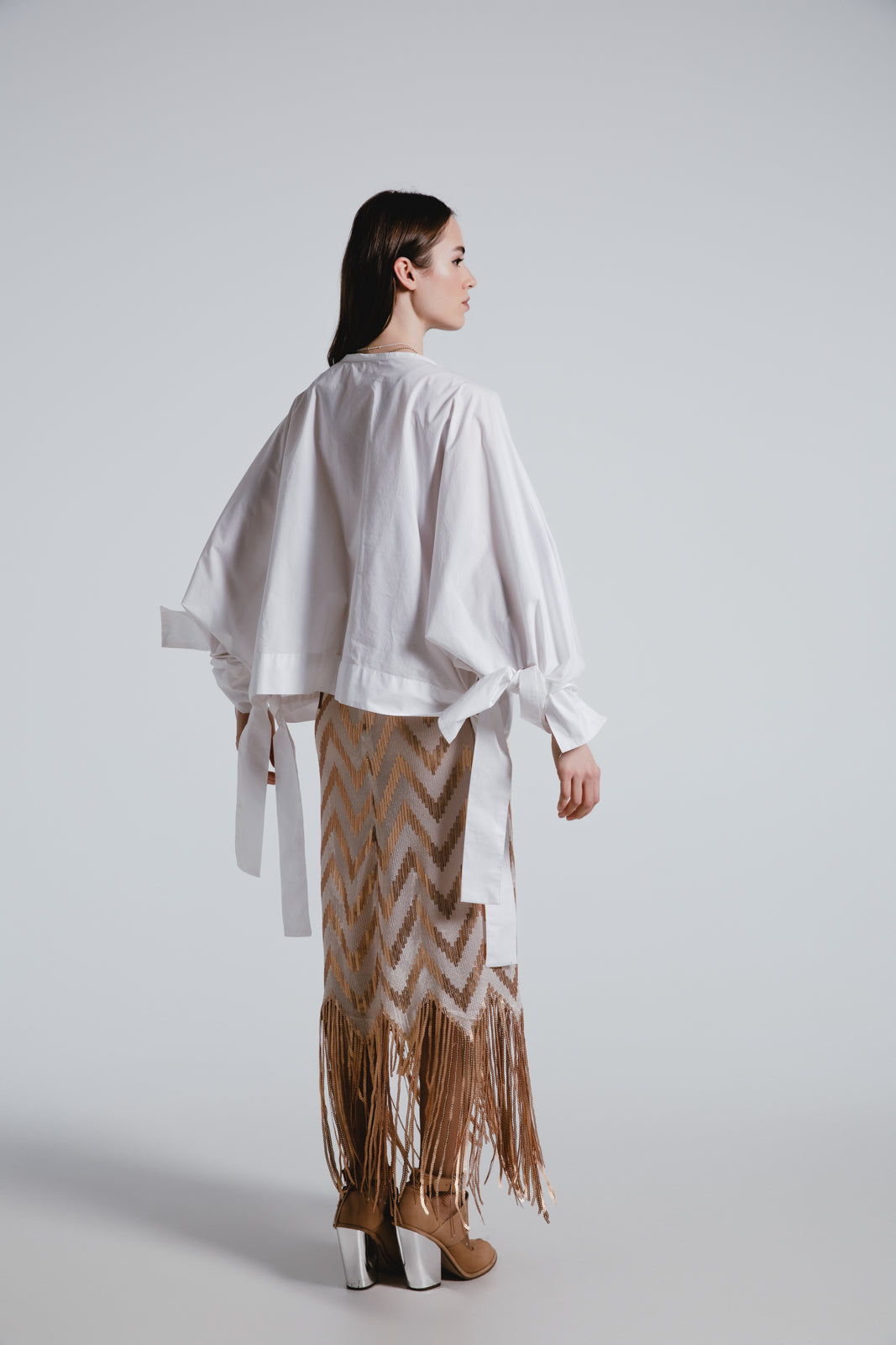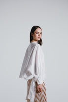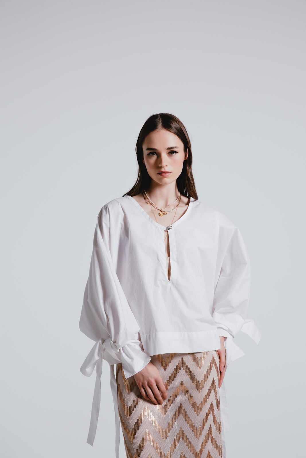 Exude effortless elegance with our Crisp White Oversized Shirt. This timeless piece features a relaxed fit and tie-sleeve and waist details, offering a modern twist on the classic white shirt. Perfect for versatile styling, from polished professional to casual chic.