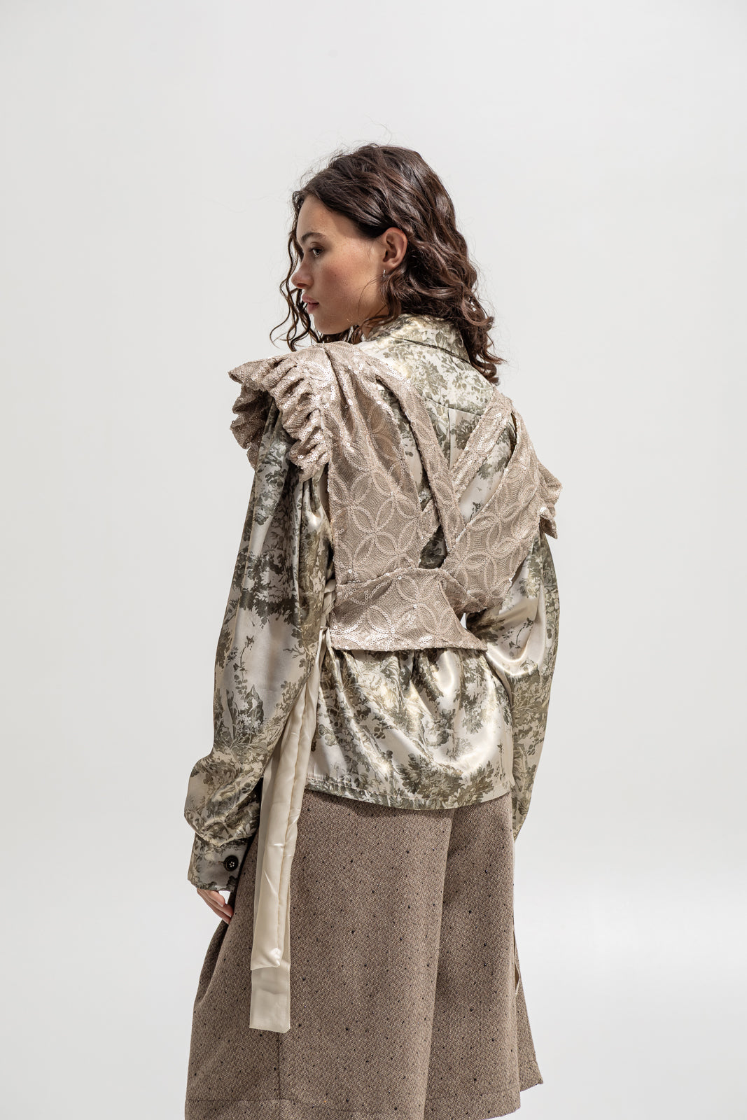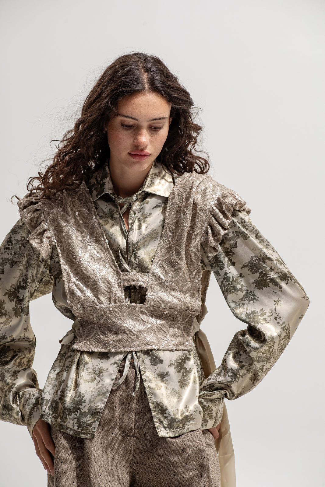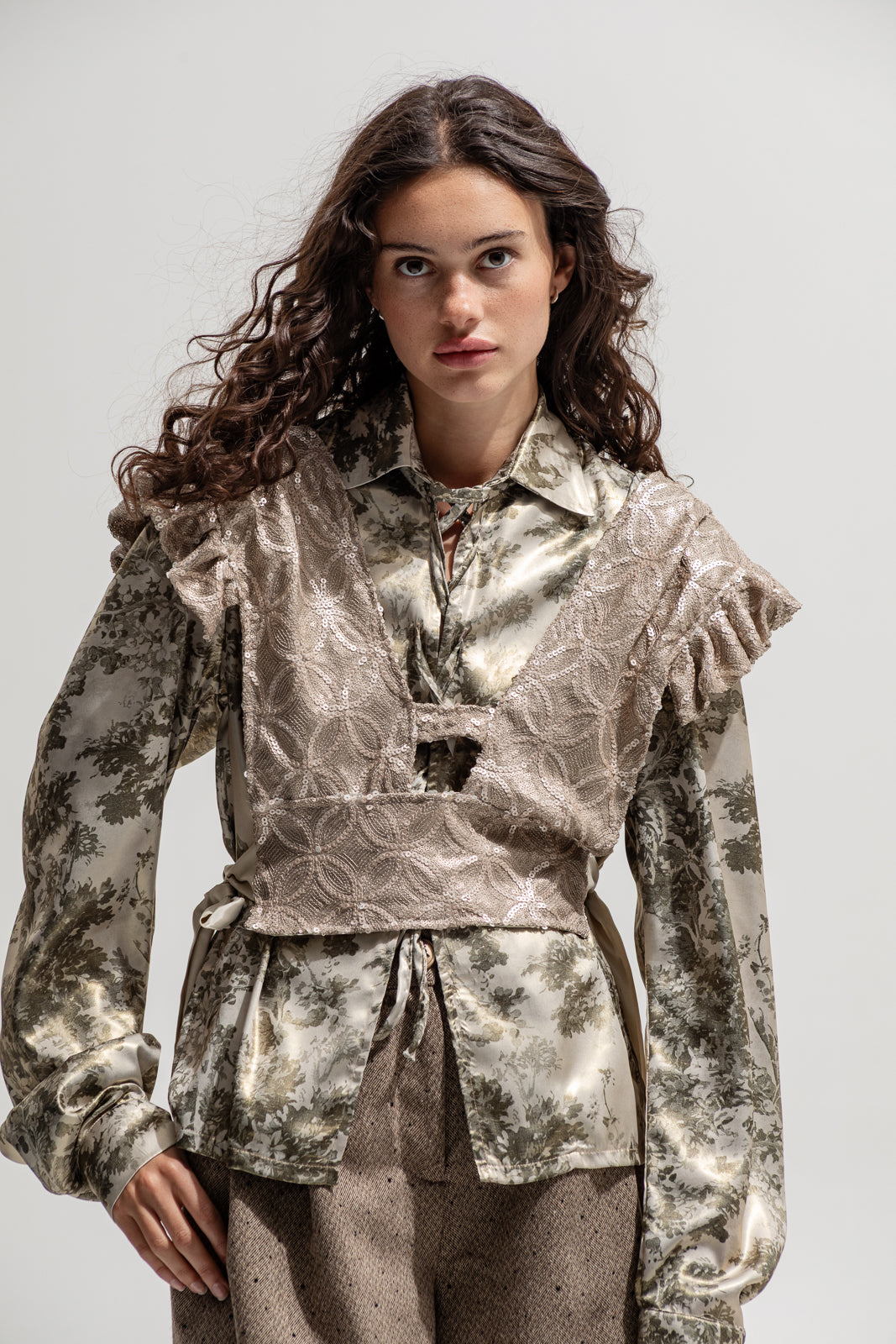 Sleeveless lace vest in champagne tone with sequin embroidery
